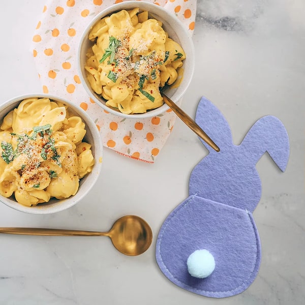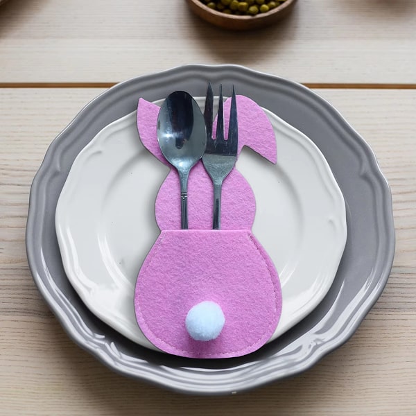 Faceți mesele de Paște speciale cu suporturi fermecătoare pentru tacâmuri în formă de iepuraș, aducând căldură și bucurie mesei dumneavoastră.