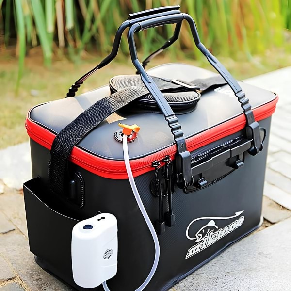 Indiferent dacă sunteți la pescuit, camping sau pe barcă, această geantă versatilă servește atât ca suport pentru pești vii, cât și ca rezervor pentru momeală, ceea ce o face accesoriul perfect pentru orice activitate în aer liber.