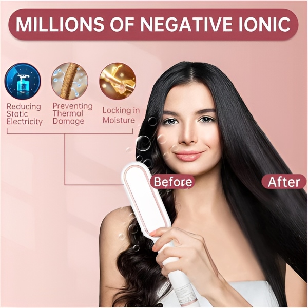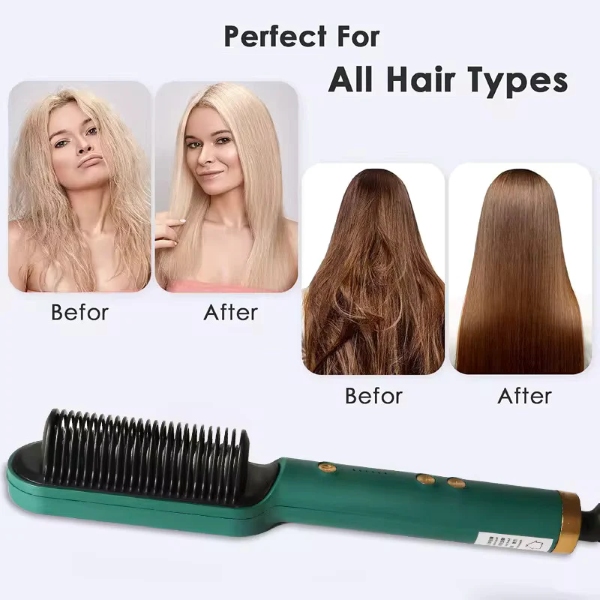 Acest dispozitiv versatil 2-în-1, care combină îndreptătorul și pieptenele, este perfect atât pentru îndreptare, cât și pentru ondulare, oferind un finisaj neted, de calitate profesională, în doar 10-15 minute.