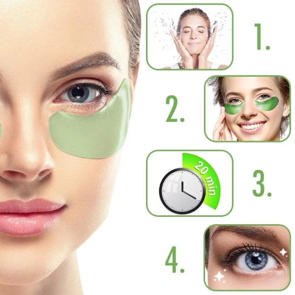 Aplică-le pentru o revigorare de 15 minute. Gelul îți îmbrățișează pielea cu un efect răcoritor și calmant care stimulează circulația și redă strălucirea.