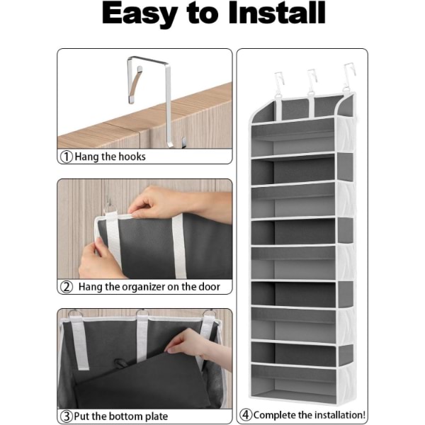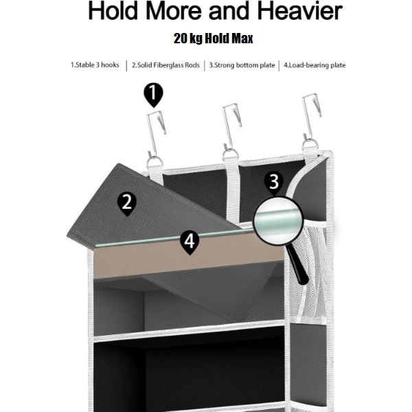 Echipat cu 3 cârlige metalice ajustabile, acest organizator se potrivește ușor pe uși de până la 4 cm grosime.