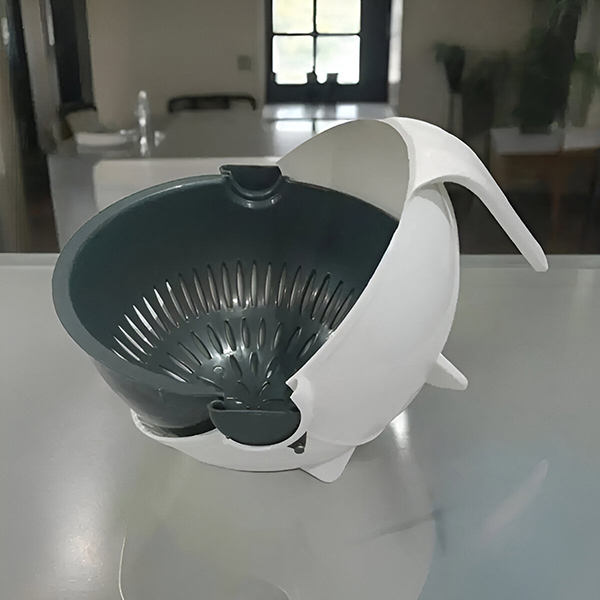 Coșul rotativ scurge apa rapid și eficient, menținându-vă spațiul de lucru uscat și curat. Această caracteristică este deosebit de utilă atunci când trebuie să procesați o mulțime de legume sau fructe deodată.