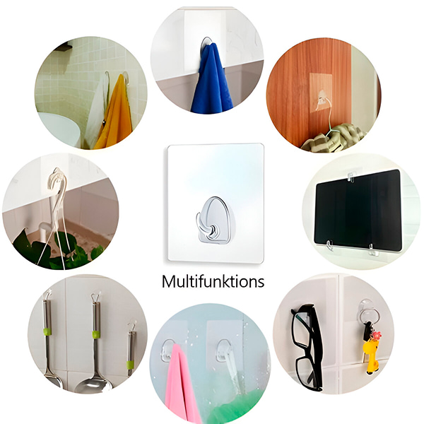 Spre deosebire de cârligele ieftine care alunecă sau cad, STICKYHOOKS suportă până la 10 kg. Agățați vase, prosoape, chei sau chiar ghivece de flori.