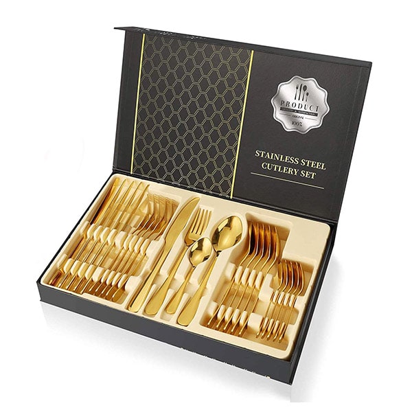 Fabricat din materiale premium, setul nostru de tacâmuri de lux promite durabilitate și performanță de lungă durată.