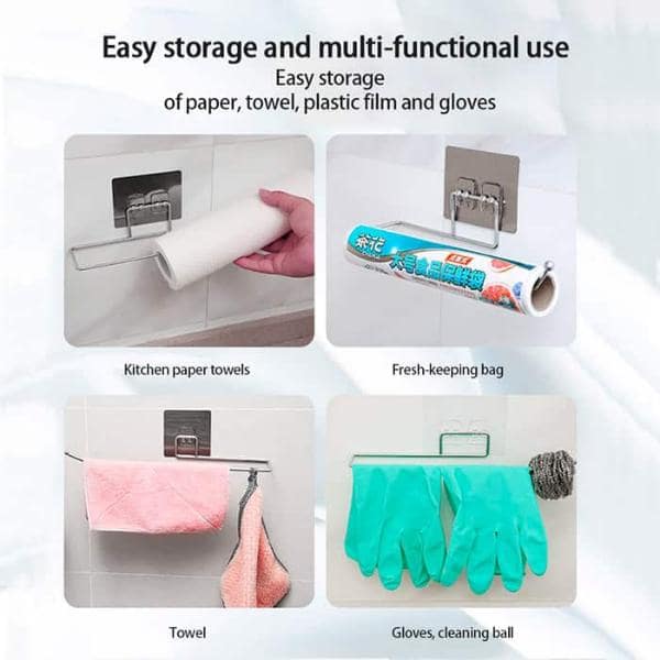 Eliberați spațiu în bucătărie și baie! Suportul pentru prosoape sau role de hârtie poate fi montat pe orice suprafață plană, inclusiv pe pereți, mobilier sau gresie!